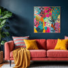 A riot of colour and joyful movement, this artwork bursts with life from every corner. Electric pinks, turquoise blues, sun-lit yellows and lush greens collide in a vibrant botanical dreamscape, filled with playful patterned petals, bold seed pods, and starburst blooms. Layered textures, dotted fields and sweeping leaf forms create a dynamic flow that pulls the eye across the canvas, revealing new details with every glance. It’s bright, punchy, full of personality — a true statement piece that brings energy, optimism and modern botanical magic into any space.