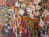 A vibrant garden of rhythm and detail, this piece blooms with layered botanicals in rich earthy greens, deep charcoal, soft blush tones and glowing pops of orange and magenta. Every element feels alive — tall sculptural stems, dotted pods, midnight-striped blooms, and soft star-like flowers weaving through the canvas. There’s movement everywhere you look, like a wild field caught in that golden moment just before dusk. Bold, patterned brushwork meets delicate florals, creating a tapestry of colour, texture and joy that instantly lifts a room. A signature B.Twomey celebration of nature — lush, layered and beautifully immersive.